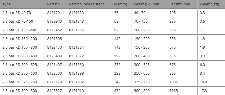 PIPE SEALING BAGS 2.5 BAR (WITHOUT BYPASS)